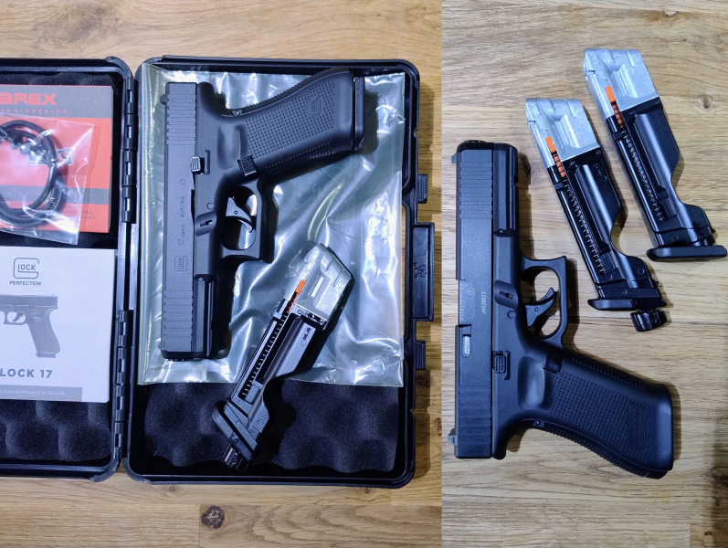 Verkaufe hier eine "gebrauchte" (neuwertiger Zustand - 1x nach Kauf benutztes Sammlerstück) UMAREX Glock 17 Gen5 T4E Defense Training Marker cal .43 Blowback in OVP inkl. Quick-Piercing-Magazin - Lieferumfang wie auf Foto. Technische Daten: Kaliber: .43 - Magazinkapazität: ca. 8 Schuss Co2-Magazin - Energie: ca. 5,0 Joule - Länge: ca. 202 mm - Gewicht: ca. 703 g - Versand mit DHL Paket inkl. Versicherung & Tracking - Bezahlung mit Banküberweisung oder mit PayPal FREUND. Altersnachweis erforderlich! Information für den Käufer - muss laut Gesetzgeber leider sein: Es handelt sich um einen Privatverkauf. Deshalb schließe ich jede Gewährleistung, Rücknahme und alle Schadensersatzansprüche im Zusammenhang mit dieser Auktion und dem verkauften Artikel aus!