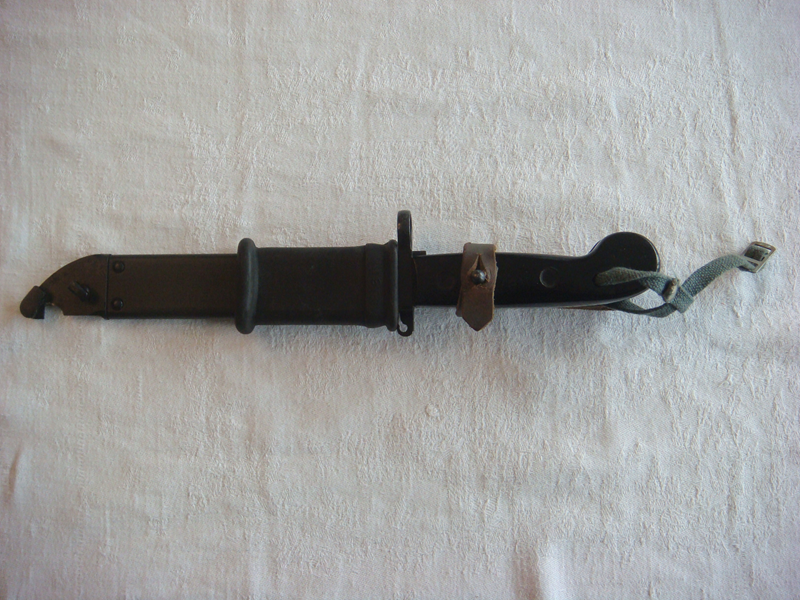 Verkaufe im Zuge der Reduzierung meiner Sammlung ein NVA Bajonett Seitengewehr AK47 mit Scheide und Koppelschlaufe. Beschreibung: Klinge mit Glattschliff und Sägerücken, Metallparierstange mit Loch für Gewehrlauf, schwarze Metallscheide mit teilweiser Gummierung, Messer in Kombination mit Scheide als Drahtschere nutzbar, Lederband mit Koppelschlaufe an Messer und Scheide zur Befestigung; Maße: Länge Messer mit Scheide 33,5cm, Länge Messer 27,5cm, Klingenlänge des Messers 14,5cm; Zustand: guter bis sehr guter Gesamtzustand mit sichtbaren, altersbedingten Gebrauchsspuren (bitte Fotos genau betrachten - sie sind Teil der Beschreibung). Privatverkauf, deshalb keine Garantie und keine Gewährleistung sowie auch kein Umtausch-, Wandlungs- oder Minderungsrecht etc.. ACHTUNG: Altersnachweis erforderlich, Versand nur mit Altersprüfung (18+). Der Versand des Bajonetts/ Seitengewehrs erfolgt erst nach entsprechendem Nachweis, dass der/die Käufer(in) mindestens 18 Jahre alt ist (nach erfolgreicher Auktion Zusendung der Ausweiskopie per E-Mail oder per Post zwingend erforderlich)! Kein internationaler Versand - ausschließlich versicherter Versand innerhalb Deutschlands. Beim Kauf mehrerer Artikel (Kombiversand) gewähre ich einen angemessenen Versandrabatt.