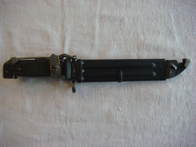 Verkaufe im Zuge der Reduzierung meiner Sammlung ein NVA Bajonett Seitengewehr AK47 mit Scheide und Koppelschlaufe. Beschreibung: Klinge mit Glattschliff und Sägerücken, Metallparierstange mit Loch für Gewehrlauf, schwarze Metallscheide, Messer in Kombination mit Scheide als Drahtschere nutzbar, Lederband mit Koppelschlaufe an Messer und Scheide zur Befestigung; Maße: Länge Messer mit Scheide 33cm, Länge Messer 27cm, Klingenlänge des Messers 14,5cm; Zustand: guter bis sehr guter Gesamtzustand mit sichtbaren, altersbedingten Gebrauchsspuren (bitte Fotos genau betrachten - sie sind Teil der Beschreibung). Privatverkauf, deshalb keine Garantie und keine Gewährleistung sowie auch kein Umtausch-, Wandlungs- oder Minderungsrecht etc.. ACHTUNG: Altersnachweis erforderlich, Versand nur mit Altersprüfung (18+). Der Versand des Bajonetts/ Seitengewehrs erfolgt erst nach entsprechendem Nachweis, dass der/die Käufer(in) mindestens 18 Jahre alt ist (nach erfolgreicher Auktion Zusendung der Ausweiskopie per E-Mail oder per Post zwingend erforderlich)! Kein internationaler Versand - ausschließlich versicherter Versand innerhalb Deutschlands. Beim Kauf mehrerer Artikel (Kombiversand) gewähre ich einen angemessenen Versandrabatt.