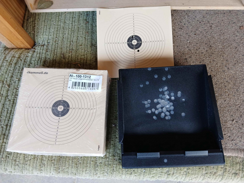 Verkaufe einen Kugelfang für 14,5cm Scheiben, zum stellen, hängen ! Ich hatte ihn gestellt und festgeschraubt ! Schraube ist dabei ! Mit ca 80 Scheiben ! Scheiben gibt es bei 4 Komma5 .de oder Shootclub.de !
