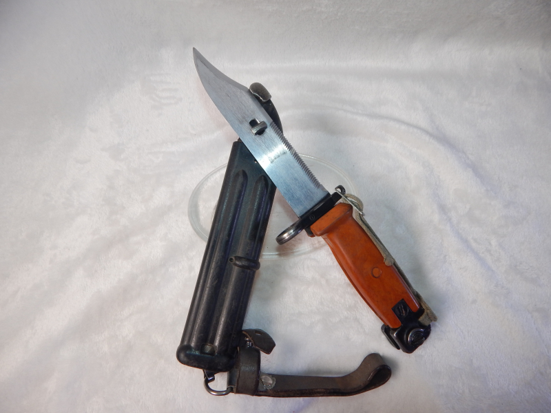 Sie bieten hier auf ein gebauchtes Seitengewehr mit Scheide , leider sind keine Zuordnungen oder Hersteller auf diesem zu erkennen, laut Google Lens für die Verwendung mit Kalaschnikow-Gewehren ( AK- 47,AKM oder AK 74 ) Klingenlänge ca.14,5 cm Gesamtlänge ca.27,0 cm Zustand siehe Bilder. Versandkosten beziehen sich auf den Versand innerhalb Deutschland Haftungsausschluss: Gemäß den Gesetzesbestimmungen für Privatverkäufe erfolgt die Auktion unter Ausschluss jeglicher Gewährleistung, Garantie und Rücknahme. Der Bieter erklärt sich damit einverstanden und erkennt dies mit seinem Gebot an. Der Artikel wird dem Höchstbietenden unter Ausschluss jeder Rechts und Sachmängel verkauft. Rückgabe des Artikels, Umtausch, Rücktritt, Minderung oder Nachverhandeln sind ausgeschlossen und werden nicht anerkannt. Laut dem neuen EU-Recht muss dieser Zusatz unter jeder Online-Auktion stehen. Bieten Sie nicht, wenn Sie damit nicht einverstanden sind.