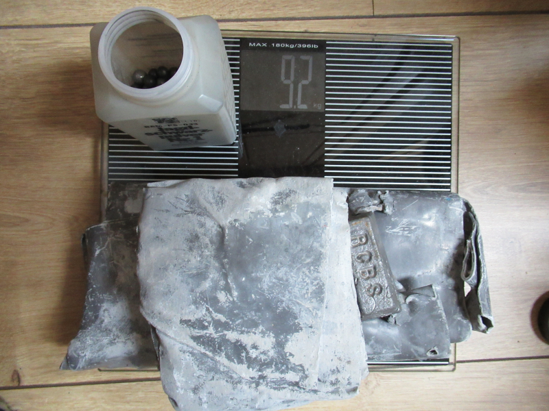 Konvolut Blei, Reste Bleikugeln, Reste 1 Bleibarren und Walzblei? ( Waage gehört nicht zur Auktion dazu!) Siehe Bilder sind Bestandteil der Auktion, Waage nicht geeicht- Personenwaage.