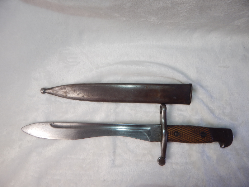 Sie bieten hier auf ein gebauchtes Seitengewehr ( Bolo - Bajonett ) mit Scheide , vorhandene Nummern und Monogramm siehe Bilder Klingenlänge ca.24,5 cm Gesamtlänge ca.37,0 cm Zustand siehe Bilder. Versandkosten beziehen sich auf den Versand innerhalb Deutschland Haftungsausschluss: Gemäß den Gesetzesbestimmungen für Privatverkäufe erfolgt die Auktion unter Ausschluss jeglicher Gewährleistung, Garantie und Rücknahme. Der Bieter erklärt sich damit einverstanden und erkennt dies mit seinem Gebot an. Der Artikel wird dem Höchstbietenden unter Ausschluss jeder Rechts und Sachmängel verkauft. Rückgabe des Artikels, Umtausch, Rücktritt, Minderung oder Nachverhandeln sind ausgeschlossen und werden nicht anerkannt. Laut dem neuen EU-Recht muss dieser Zusatz unter jeder Online-Auktion stehen. Bieten Sie nicht, wenn Sie damit nicht einverstanden sind.