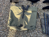 23 beflockte Lockkrähen (bei einigen muss die Beflockung erneuert werden), 6 Elstern, 5 Erdspieße, 4 Teleskopstangen zum Schirmbau, Tarnnetz, Transportsack