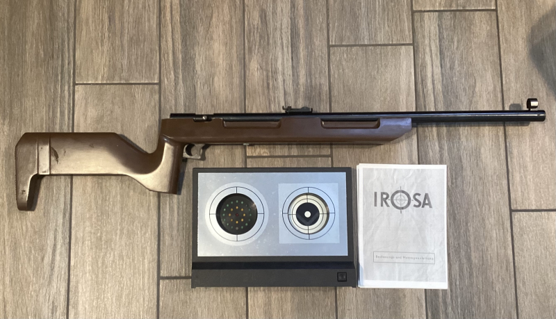 Gegenstand der Auktion ist diese Irosa Schiessanlage mit Gewehr,elektronischer Zielscheibe und Beschreibung.