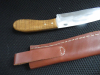 Jagdmesser mit handgeschmiedeter und gehärteter Klinge aus Kohlenstoffstahl, Scharf abgezogen, Griff aus Streifenahorn, zweifach vernietet, verzierte Lederscheide, Länge 22 cm, Klingenlänge 12,5 cm, ECHTEN HANDARBEIT !!!! EINMALIG !!!!