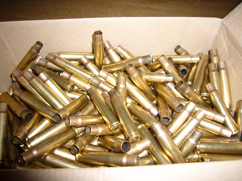 Die Hülsen wurden einmal verschossen dann kalibriert, das Hülsenfett ist noch darauf.
