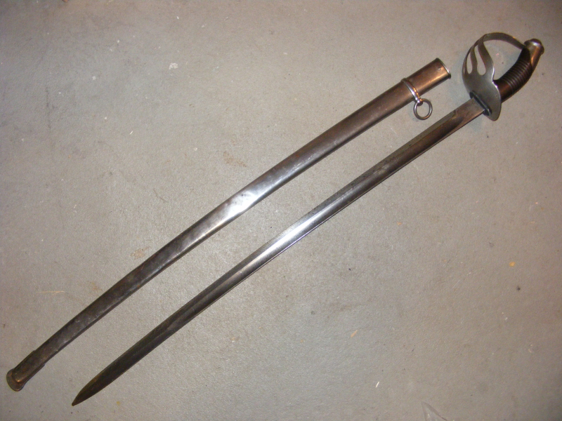 Säbel, mir unbekannt, könnte eine Adaption eines französischen Säbels mit einer deutschen Klinge sein. Klingenlänge: 81 cm, Ges. L.: 96 cm.