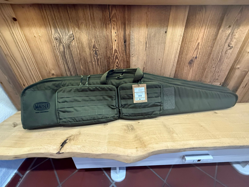 Das MAUSER Futteral Original verfügt über einen gepolsterten Tragegriff für den bequemen Handtransport. Für längere Strecken steht ein mittig platzierter Schultertragegurt mit gepolstertem Schulterpad zur Verfügung. Die abschließbaren Reißverschlüsse an Haupt- und Fronttaschen sichern deine Ausrüstung ab. Auf den Fronttaschen sind Molle-Schlaufen angebracht, die es ermöglichen, zusätzliches Equipment zu befestigen. Eine Klettfläche bietet Platz für Patches. Zudem gibt es eine Schlaufe zum Aufhängen des Futterals. Das MAUSER Futteral Original – aus Liebe zu deiner Waffe!