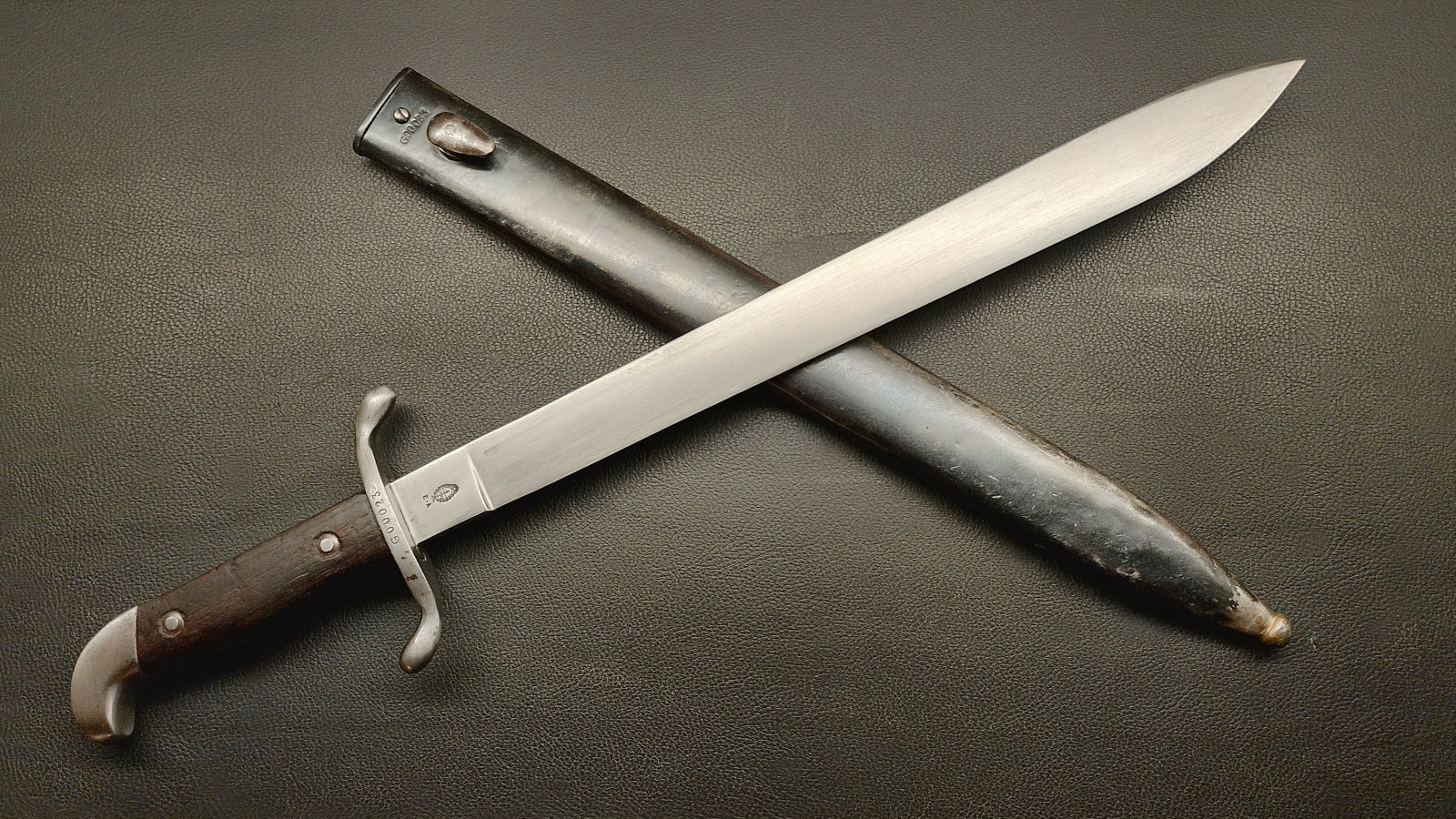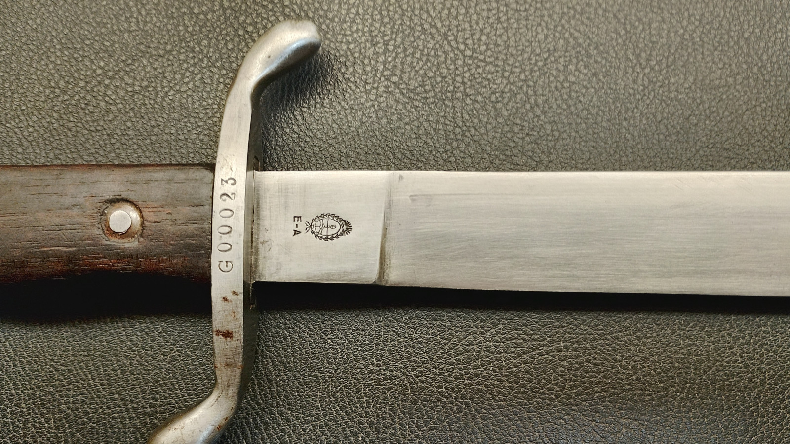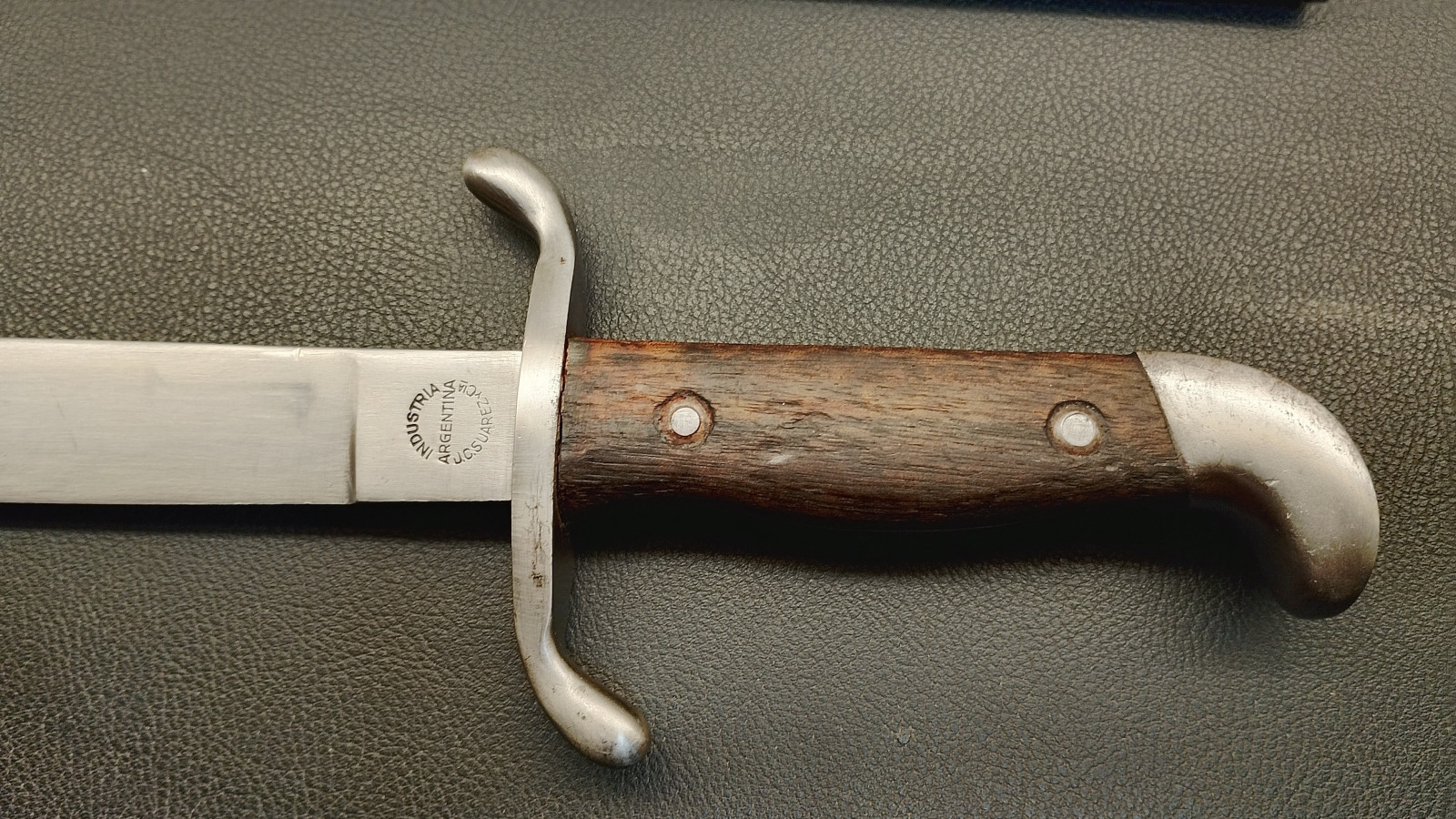 Verkaufe aus meiner Sammlung: Machete M1909 : Industria Argentina ; Nummerngleich G 00023 ; Klinge nicht geschliffen ; Parierstange hat leichtes Spiel ; Klingenlänge ca. 37,5 cm ; Klinge geht ca 2 mm nach links ; Gesamtlänge ohne Scheide ca. 50,5 cm ; Erhaltungszustand ist Ansichtssache . Bitte schätzen Sie den Zustand des angebotenen Artikels anhand der Bilder selbst ein . Bilder sind Gegenstand der Auktion . .....Viel Spass beim Bieten .....