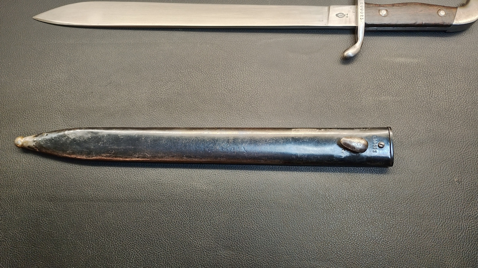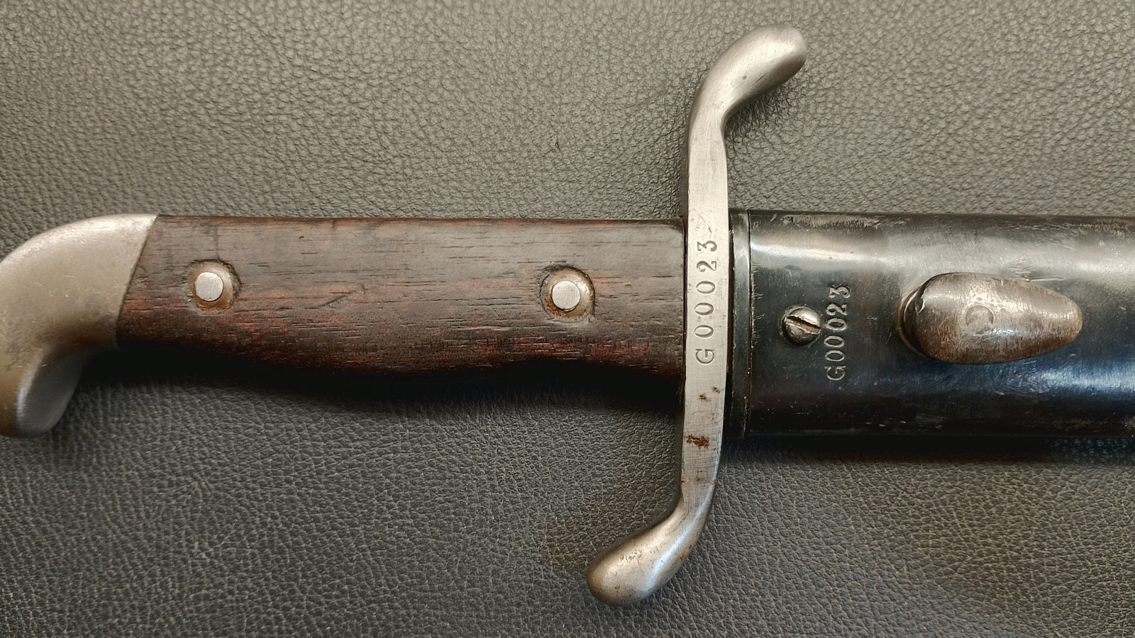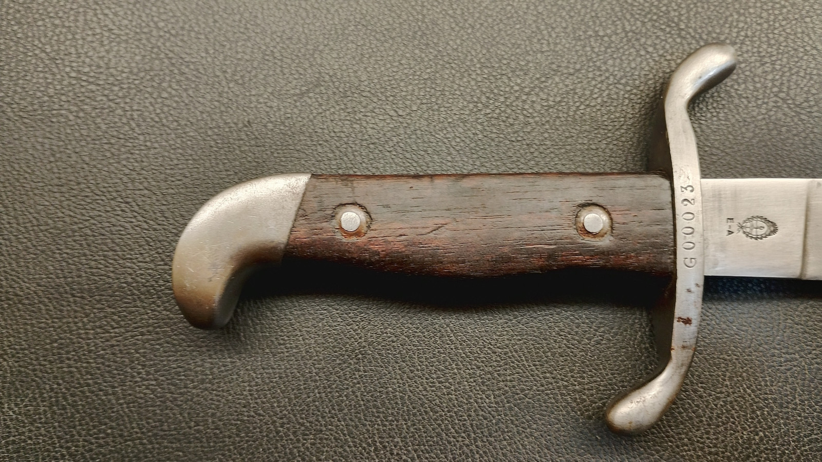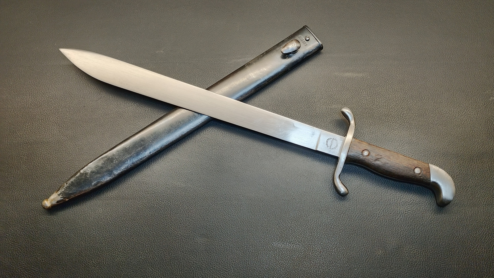 Verkaufe aus meiner Sammlung: Machete M1909 : Industria Argentina ; Nummerngleich G 00023 ; Klinge nicht geschliffen ; Parierstange hat leichtes Spiel ; Klingenlänge ca. 37,5 cm ; Klinge geht ca 2 mm nach links ; Gesamtlänge ohne Scheide ca. 50,5 cm ; Erhaltungszustand ist Ansichtssache . Bitte schätzen Sie den Zustand des angebotenen Artikels anhand der Bilder selbst ein . Bilder sind Gegenstand der Auktion . .....Viel Spass beim Bieten .....