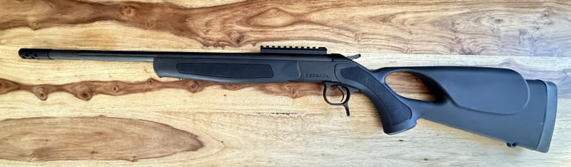 Zum Verkauf wegen Verschlankung des Tresorinhaltes steht hier eine mit 250 Schuss Fabrikmunition auf dem Schießstand beschossene Bergara Kipplaufbüchse BA 13 TakeDown Thumbhole im Kaliber .223 Rem. Der kanellierte 20 Zoll Lauf (51cm) hat einen Drall von 1:8 und ein 5/8-24 UNEF Mündungsgewinde (Mündungsdurchmesser 17,5mm). Die separat erwerbare Mündungsbremse von Bergara, ist hier im Angebot dabei. Die Picatinny Schiene ist wie von Bergara empfohlen zusätzlich vom BüMa verklebt. Der Handspanner ist für Linkshänder umkehrbar. Die Büchse kann leicht ohne zusätzliches Werkzeug zerlegt und platzsparend transportieret werden.