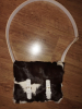 Kalbsfelltornister nach hessischem Muster - Dunkelbraun / weißes Fell - weißgegerbte Lederriemen - deutsche Produkte - Messingschnallen - B = 30 cm / H = 24 cm / T = 7 cm - vom Schuhnagel im Schwarzwald hergestellt - NEU