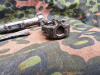Zum Angebot stehen originale Verschlussteile eines deutschen MG 42 aus dem Zweiten Weltkrieg, im stark korrodierten Bodenfundzustand. Bestandteile: Verschlusskopf (mit erkennbaren Rollenaufnahmen) Verschlussträger Schlagbolzen (stark korrodiert) Der Zustand ist deutlich gebraucht mit massiver Oxidation, Lochfraß und Materialabtrag durch lange Lagerung im Erdreich. Bewegliche Teile sind fest, keine Funktionsfähigkeit gegeben. Es handelt sich um reine Relikt- bzw. Sammlerstücke. Ideal für: Militaria-Sammler Restaurierungs- oder Anschauungszwecke Dekorative Ausstellung historischer Waffenrelikte Es wird ausdrücklich darauf hingewiesen, dass es sich um ein historisches, nicht funktionsfähiges Relikt handelt.