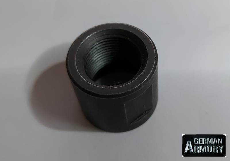 Dieser Gewindeschutz stammt aus SIG Sauer Fertigung. Kann mit einem 17er Maulschlüssel angezogen werden. Er besitzt das amerikanische Standardgewinde 1/2X28, ist aus gehärtetem Stahl gefertigt und brüniert. Wenn Sie nicht sicher sind um welches Gewinde es sich bei Ihrer Waffe handelt, suchen Sie bitte unsere Homepage auf, dort finden Sie eine Hilfestellung zur Bestimmung.