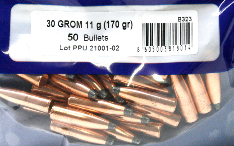 Das GROM Geschoss wird aus einer Kupferlegierung mit einer Bleikernspitze gefertigt.