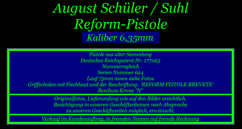 August Schüler / Suhl Reform-Pistole Kaliber 6,35mm