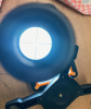 Das Absehen ist ein feines Kreuz, in der Mitte mit Punkten. Hoffentlich auf dem Foto zu erkennen.