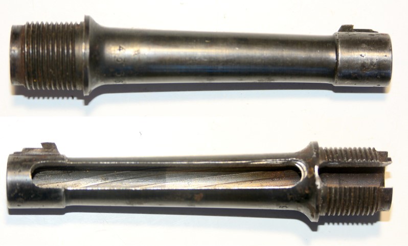 Völlig unbrauchbarer Lauf von Luger Pistole, Anschauungsmodell, 2. Weltkrieg, am Kornsattel ist die vordere Klammer abgebrochen