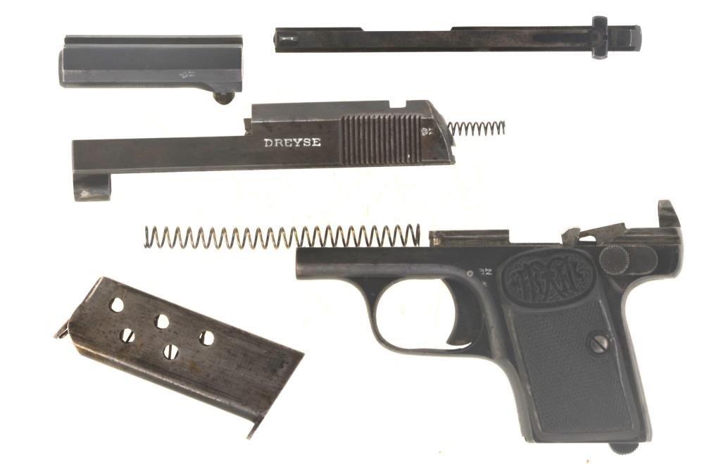 Rar: Westentaschenpistole Taschenpistole Dreyse Mod. 1908 Kal. 6,35 mm Browning, Schmeisser-Patent