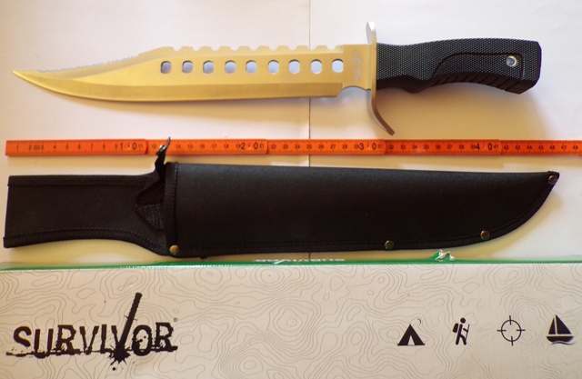 Verkaufe hier aus meiner Sammlung ein großes und schweres Bowiemesser/Outdoormesser im TOP-Zustand. Neu und ungebraucht in der Originalverpackung. Fast 45 cm lang, schwer und mit rutschfestem Vollgummigriff in einer Cordurascheide.
