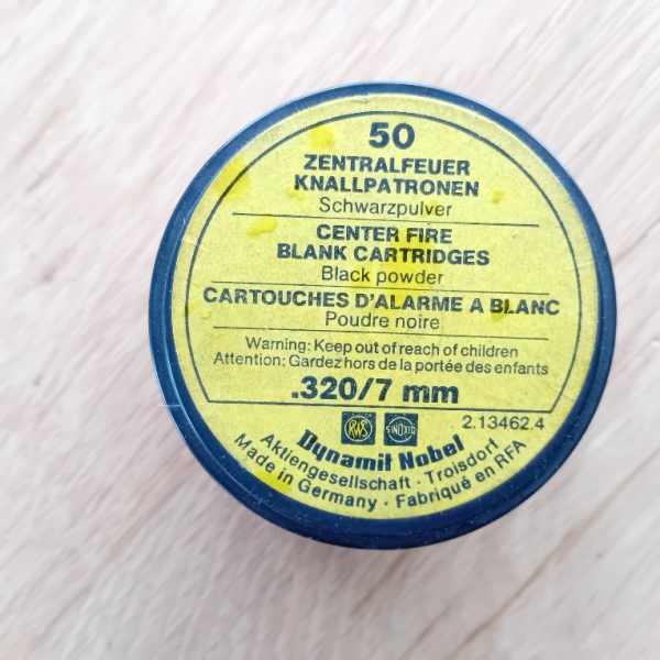 1 Originalpackung RWS- Knallpatronen Kal. .320/ 7mm mit 50 Stück
