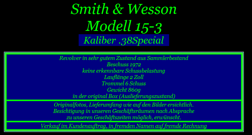 Artikel-ID: 20297818  •  ArtikelNr. des Verkäufers: 12779  •  Kategorie: Grosskaliber Kurzwaffen > Gebrauchsrevolver > Smith & Wesson