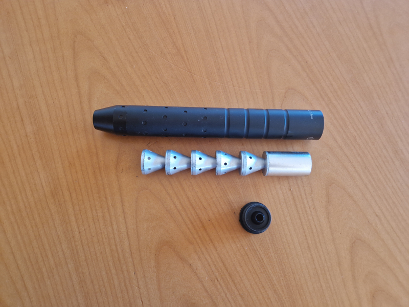 Dämpfer lässt sich problemlos zerlegen und reinigen. Ideal für Freizeit- oder Sportschützen im Bereich Luftdruck.