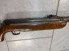 Schweres Gewehr mit Seitenspanner in 4,5 mm Diabolo, gezogener Lauf. Schuss löst nur schwerlich aus. Starke Gebrauchsspuren. F-Zeichen Variante. Privatverkauf.