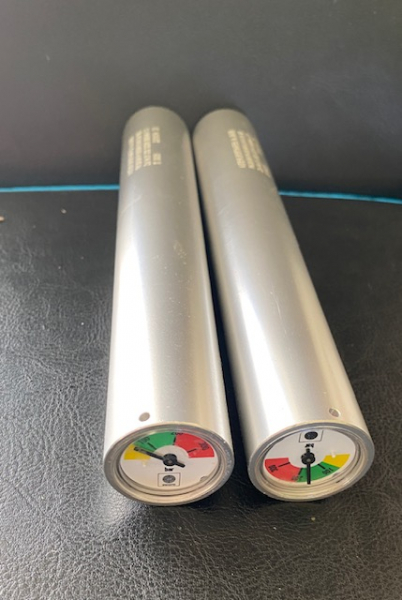 Verkauft werden 2 Pressluftkartuschen mit Manometer. Beide sind Tüv abgelaufen, aber voll funktionsfähig und dicht. Da sie keinen Tüv mehr haben dürfen sie auf Wettkämpfen nicht mehr verwendet werden. Bei Versand wird der Restdruck abgelassen. Besichtigung vor Ort oder Abholung nach Kauf ist möglich. Da dies ein Privatverkauf ist gewähre ich keine Garantie, keine Gewährleistung und keine Rücknahme.