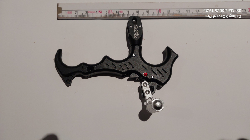 Zu Verkauf steht: Compound-Bogen, auf dem finde ich keinen Hersteller; Auflage von OAD(?) und Visier von Fuse, mit Release von Cupid, der/das Release kostet wohl ca. 30€ im Netz; gebraucht, siehe Bilder