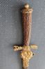 Obere Scheidenbeschlag - Wappen, gekrönter Löwe mit Axt und Krone. Klassisches königliches Emblem.