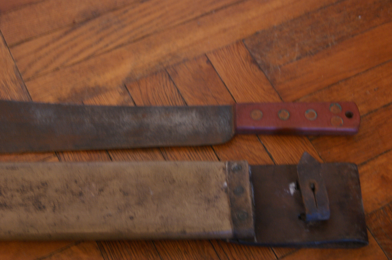 Biete hier eine englische Armee Machete an, Länge 54 cm, mit Original Scheide,gemarkt Pfeil KL8277 1952, auf Scheide gemarkt 107 Brourd Arrow,D.H.&G.1951 CAT.No KE5513, guter Zustand, sicherlich nur noch selten zu bekommen, gefertigt für den Dschungelkrieg.