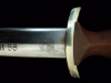 Neusilber Montur, gut erhaltener Holzgriff ohne Gebrauchsspuren, geprägter Adler und emeilierte Pastille, Klinge mit Pliestspuren, satte geschwärzte Doppelseitige Ätzung.
