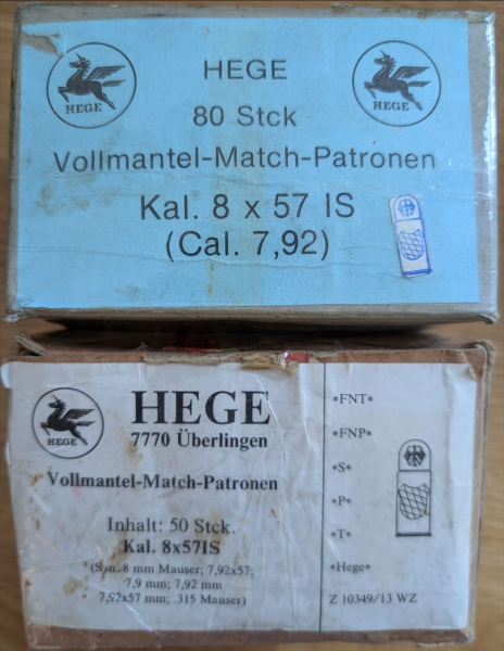 Zum Verkauf kommen insgesamt 351 Schuss 8x57IS (HEGE) verschiedene Bodenstempel.