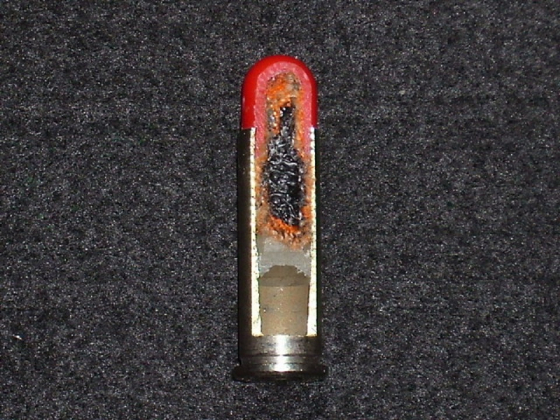 38 Special + P S&W Fertigung , Schrotbeutel rot - Schnittmodel - MASCHINENSCHNITT
