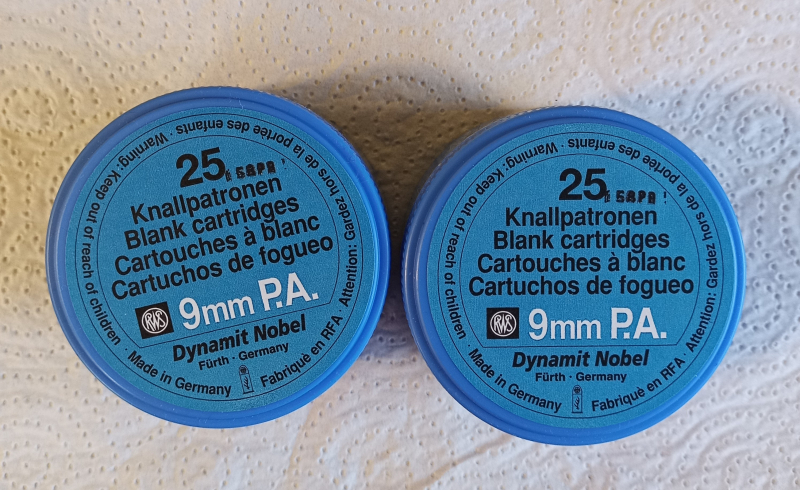 Biete hier ältere 9mm Knallpatronen an. Es sind 2 volle Schachteln a 25 Stk.