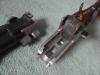 Im Kundenauftrag, Bockbüchsflinte, Fabrikat Sauer & Sohn, Mod. 54, im Kaliber .222Rem-16/70. Jagdliche Gebrauchsspuren, steht aber seit 30 Jahren im Schrank. Montiert mittels SEM ist ein Zeiss, Diavari-D 1,5-6x36, Absehen 4. Optik ist einwandfrei. Beschuß ist HB (1971). Im Verriegellungshebel und im Schaft als Monogram hat sich der Eigentümer mit seinen Initialen verewigt. Eine Abdeckkappe vom ZFR fehlt. Versuche
