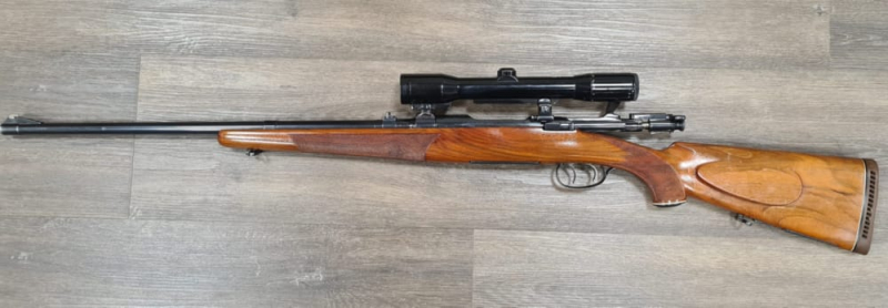 Dieses Gewehr ist gebraucht, befindet sich jedoch in einem sehr guten Zustand mit normalen bis wenigen Gebrauchsspuren (dem Alter entsprechend ein paar kleine Macken und Fehlstellen im Holz und der Brünierung) und wurde in unserer hauseigenen Werkstatt gewartet.