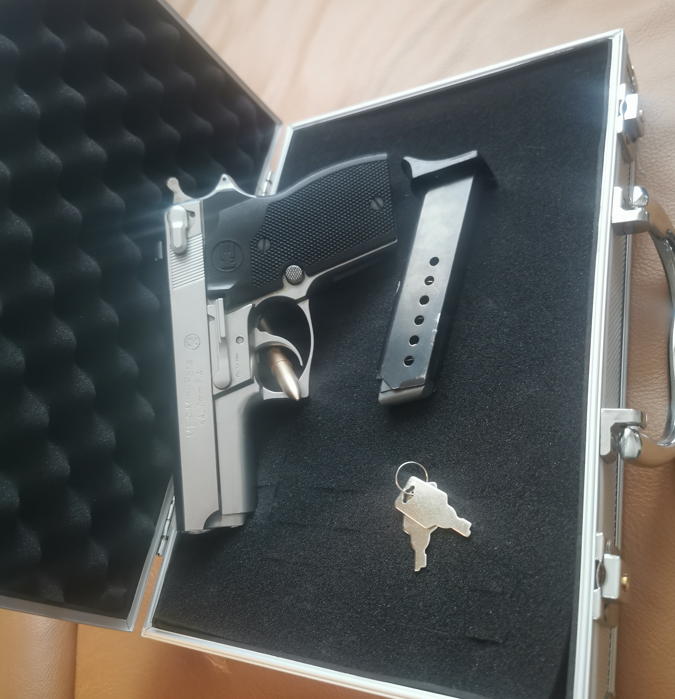 zur Auktion kommt eine kaum gebrauchte, oder besser gesagt neuwertige Schreckschusspistole in einem äußerst gepflegten Zustand in einem abschließbaren Alu Koffer. Beschusscode/Jahr TK (1999). PTB-479. Cal. 9mm P.A.K. Signal/Knall/Gas/Schreckschuss. Heckler und Koch lässt mit diesem Modell grüßen! Ab 18 Jahre!!! Private Auktion ohne Garantie Umtausch oder Rücknahme. Ich wünsche allen Beteiligten Interessenten viel Spaß und Glück beim bieten.