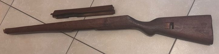 Zum Verkauf steht ein Gewehrschaft für ein G43 / K43. Der Schaft war so montiert und stammt aus einem alten Bestand. Ob es sich um ein originales Wehrmachts-Teil oder eine spätere Ersatzanfertigung handelt, kann ich leider nicht mit Sicherheit sagen.