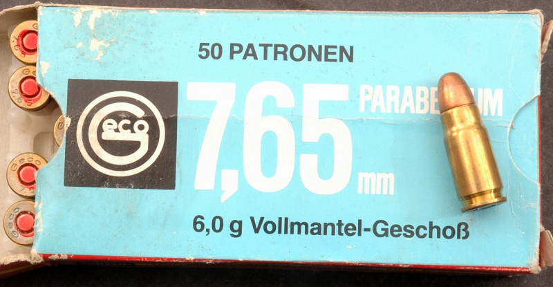 orig. Packung mit 50 Patronen im Kaliber 7,65 mm Parabellum