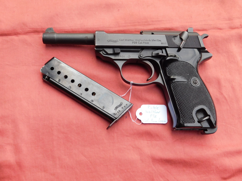 Walther P38 Kal. 9 mm Luger mit dem seltenen Stahlgriffstück!! Für mich sind keine bis minimale Gebrauchsspuren sichtbar! Leicht und sauber auslösender Abzug. Beschuss vorhanden. Waffe ist sehr gut im Zustand, Lauf innen spiegelblank und Profil scharf.