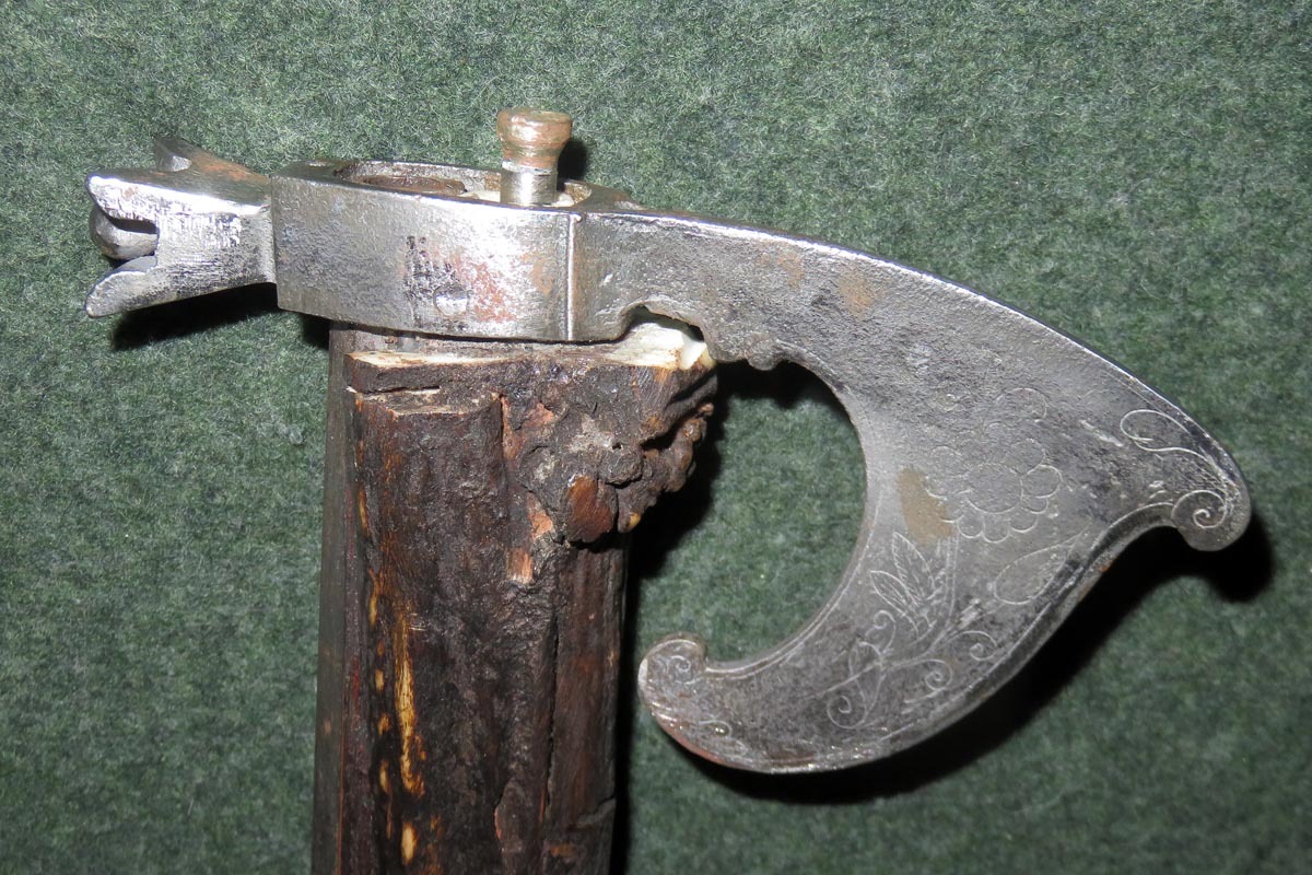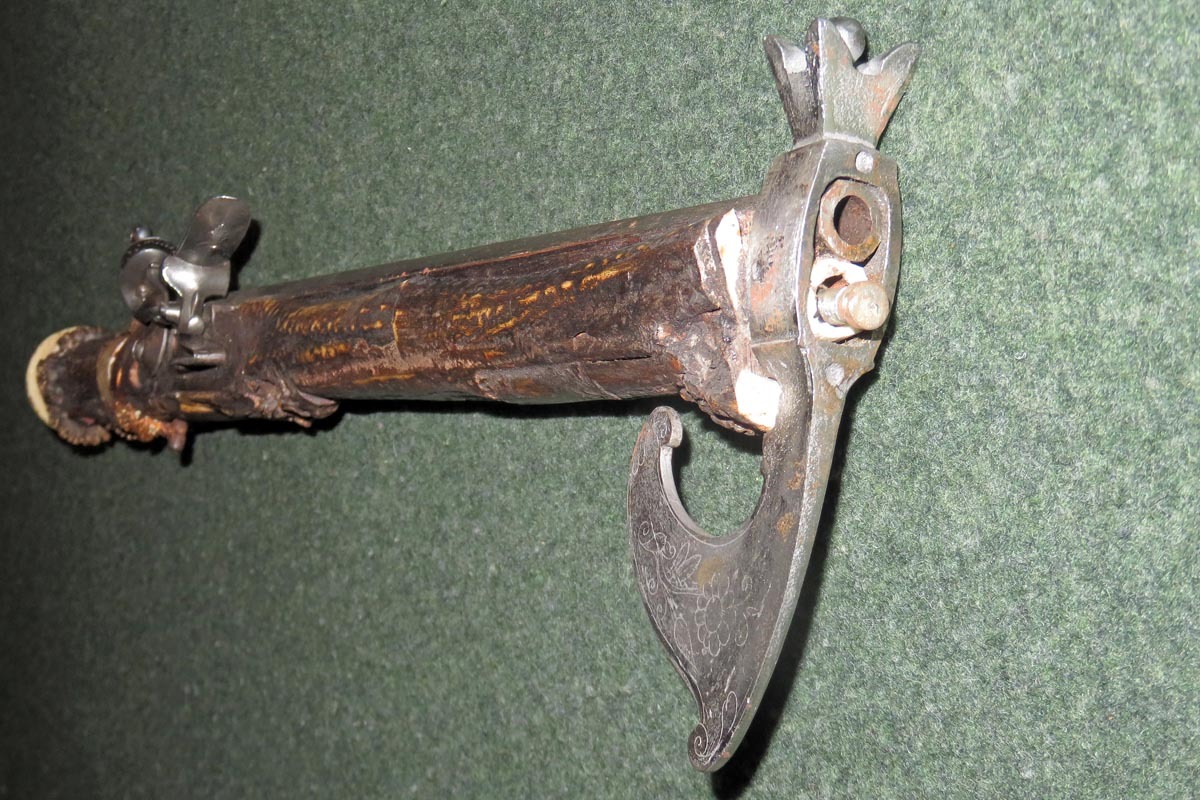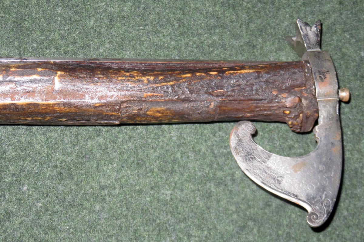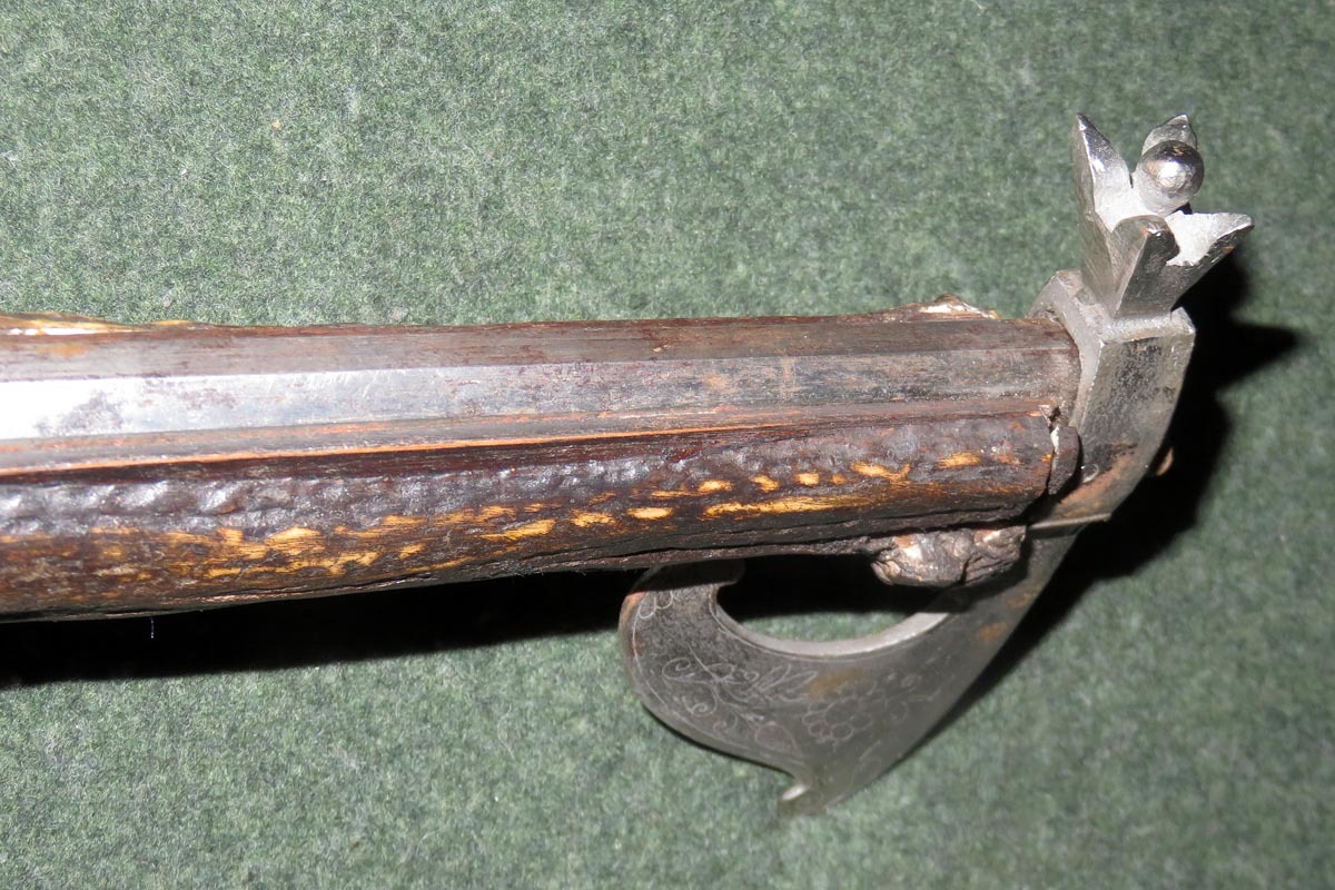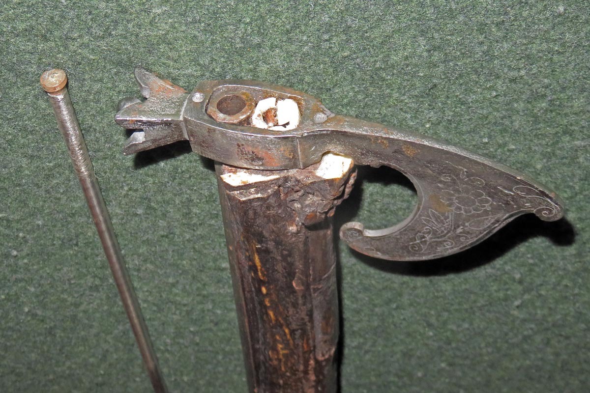 Der alte achtkantige Lauf hat ein kleines Kaliber von 8 mm, mit Ladestock.