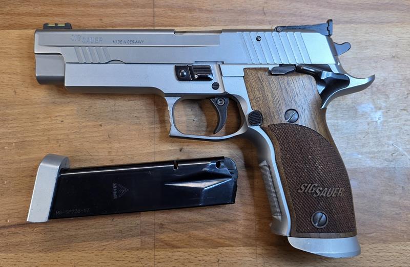 Zum Verkauf steht eine Sig Sauer P226 X-Five made bei Sig Sauer Germany Eckernförde. X-Five 9mm Luger, single action. Gekauft 2007, 2. Lauf ca 6000 Schuß. Lichtsammler-Visier, austauschbar. Leichte Gebrauchsspuren.