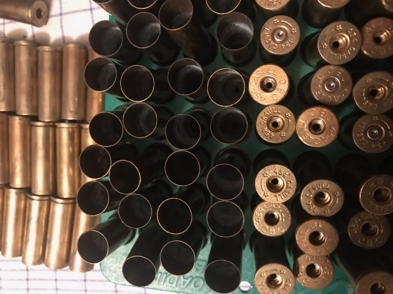 Von Privat : 110 Hülsen im Kaliber 454 Casull , teilweise entzündert, innen etwas angelaufen / Oxidierert - siehe Bild - Von Privat, daher keine Garantie oder Rücknahme - Versandpauschale 6 Euro - ins Ausland mehr, evtl bitte Anfragen