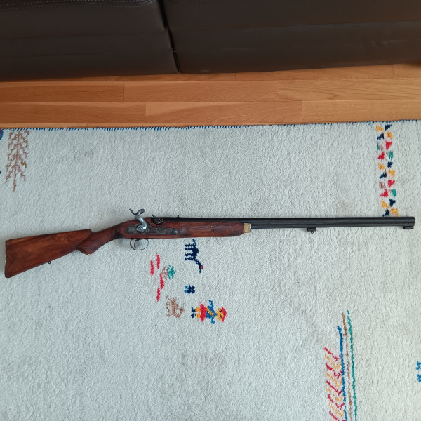 Hallo, Egunner, ich biete hier eine alte Flinte, war sicher mal eine sehr schöne Jagdflinte, zum Ersteigern. Sie liegt gut im Anschlag, ist ca. 112cm lang, der Lauf hat Kaliber ca. 17mm. Zu Alter und Hersteller kann ich keine Angaben machen. Der Lauf ist aushakbar, hat relativ gute Substanz, ist innen aber altersbedingt rostnarbig. Das Schloss funktioniert, der Hahn rastet zweimal ein, Piston ist durchgängig, das Abschlagen von Zündhütchen funktioniert. Aus den Bildern ist u. a. zu ersehen, dass der Schaft Gebrauchsspuren und Schadstellen aufweist. Sicher für Könner ein schönes Restaurationsobjekt. Da eine derartige Restauration meine handwerklichen Fähigkeiten übersteigt, andere dies vielleicht vermögen, biete ich die Flinte als defekt zum Verkauf. Versand erfolgt versichert mit DHL. Den Bildern ist genaueres zu entnehmen. Falls weitere Auskünfte erbeten - bitte fragen. Das Übliche: keine Garantie, Gewährleistung oder Rücknahme. Nun viel Erfolg beim Ersteigern!