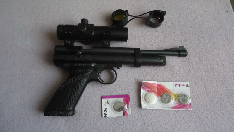 Zum Verkauf kommt eine Crosman 2240 ,Kaliber 5,5 mm.Ausgestattet mit dem Steel Breech Kit aus Spezialstahl anstelle der Kunststoffteile.Ausserdem ist ein Diana Rotpunktvisier montiert.Einige Batterien für das Red Dot lege ich noch bei.Die Power der Pistole ist bestimmt bekannt.Ich habe im Dezember im kalten Keller 7,1 Joule gemessen.Alles ist dicht und funktioniert optimal.Der Neupreis für alle Teile liegt bei ca 250 Euro.(Grob überschlagen )