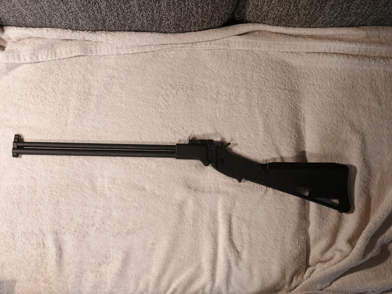 Mein Waffenschrank droht zu platzen. Also muss ich mich von einigen Waffen trennen. Hier wird ein Scout M6im cal. 22 LR und .410/76 angeboten. Die Waffe ist gebraucht und hat - wenige - Gebrauchsspuren. Das ist das ultimative Survivalgewehr. Sie ist in den letzten Jahren nur noch auf dem Stand geschossen worden. Der Lauf ist blank und die Züge sind scharf.Zusammengeklappt past sie in jeden Rucksack. Das Ding macht einfach eine Menge Spaß.
