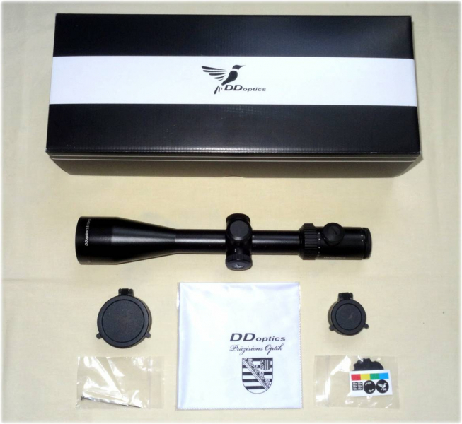 Die voll vergütete Optik, die keinerlei Reflexe zulässt, bietet ein brillantes Bild mit herausragenden Randschärfeeigenschaften. Wegen des nur minimalen Falschlichtanteils stört selbst Gegenlicht nicht. Die Lichttransmission weist mit 94,7 % (Tag) bzw. 93 % (Nacht) Spitzenwerte auf, die ein sicheres Ansprechen bis zum letzten Büchsenlicht erlauben. Das Leuchtabsehen 4N befindet sich in der Okularbildebene (2. Bildebene) und bleibt damit beim Vergrößerungswechsel immer gleich groß. Für die Verstellung des Absehens bedarf es keinerlei Hilfsmittel.                … „ Originaltext von DDoptics